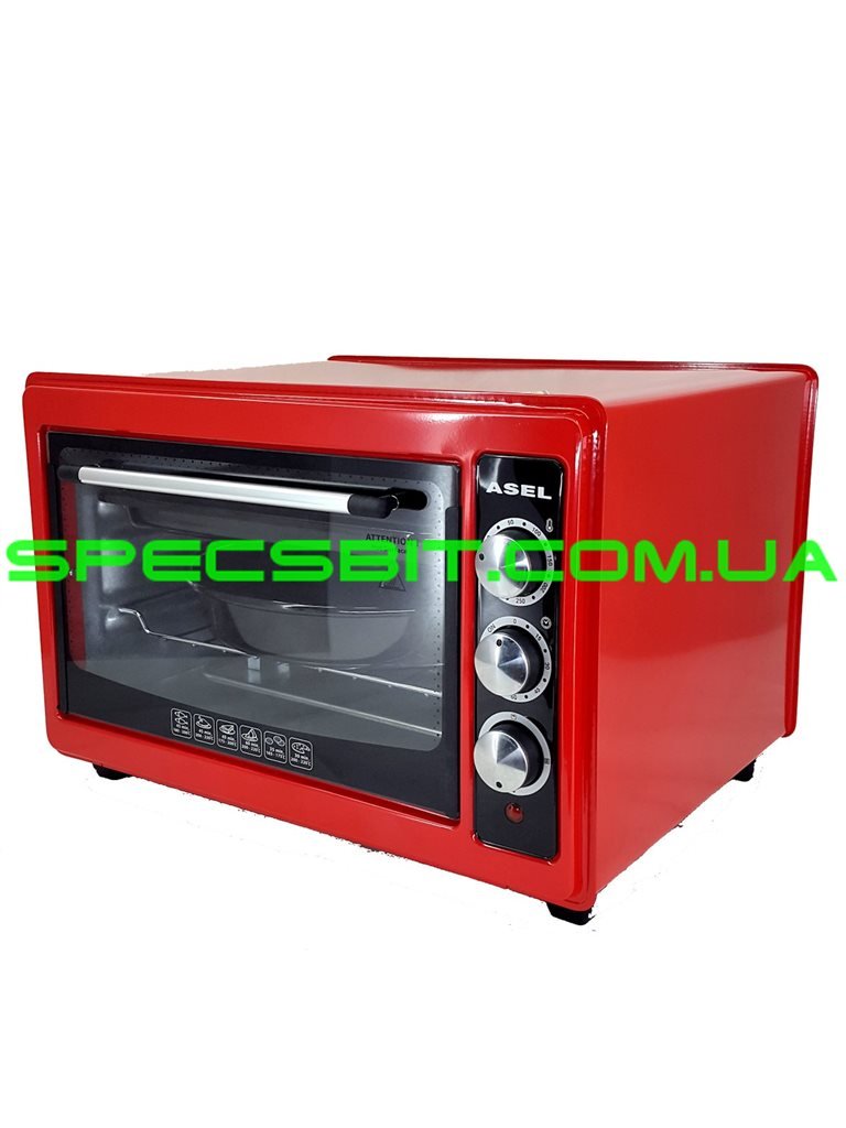 Очень популярна настольная духовка Асель 33 литра с таймером. Мы стараемся держать доступную низкую цену что можно купить духовку Асель 33-23. Электродуховка ASEL 33 литра очень проста в использовании. В комплекте все есть необходимая посуда очень хорошего качества. Можно задать терморегулятором температуру от 0 до 320 градусов и установить время на отключение (таймер) от 0 до 90 минут или включить чтоб работала без отключения если необходимо допустим готовить блюдо 2-3 часа и более.