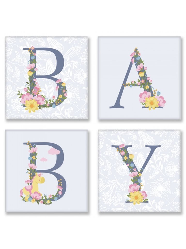 Набор для росписи по номерам. "BABY Прованс" 18*18 см*6,5 CH107 Добавьте уют в свой дом! Рисуйте великолепные цветочные слова по номерам и добавляйте смысла вашему интерьеру. Каждая буква расположена на отдельном полотне с цветным фоном - вы сможете составить эксклюзивную композицию на свой вкус. Выбирайте нежные мотивы Прованса, Скандинавскую лаконичность или Лофтовый контраст. Состав набора: 4 полотна с цветным фоном на подрамниках 18 * 18. На каждом полотне размещены контуры буквы в цветочном оформлении с номерами под раскраску, 2 кисточки (средняя и маленькая), набор акриловых пронумерованных красок, контрольный лист, инструкция. Каждый набор оформлен в подарочную обертку с ручкой!