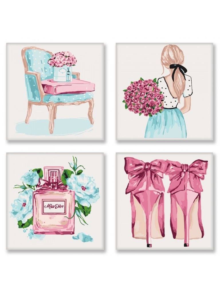 Набор для росписи по номерам. Полиптих "Маленькие радости" KNP008 4шт 18*18