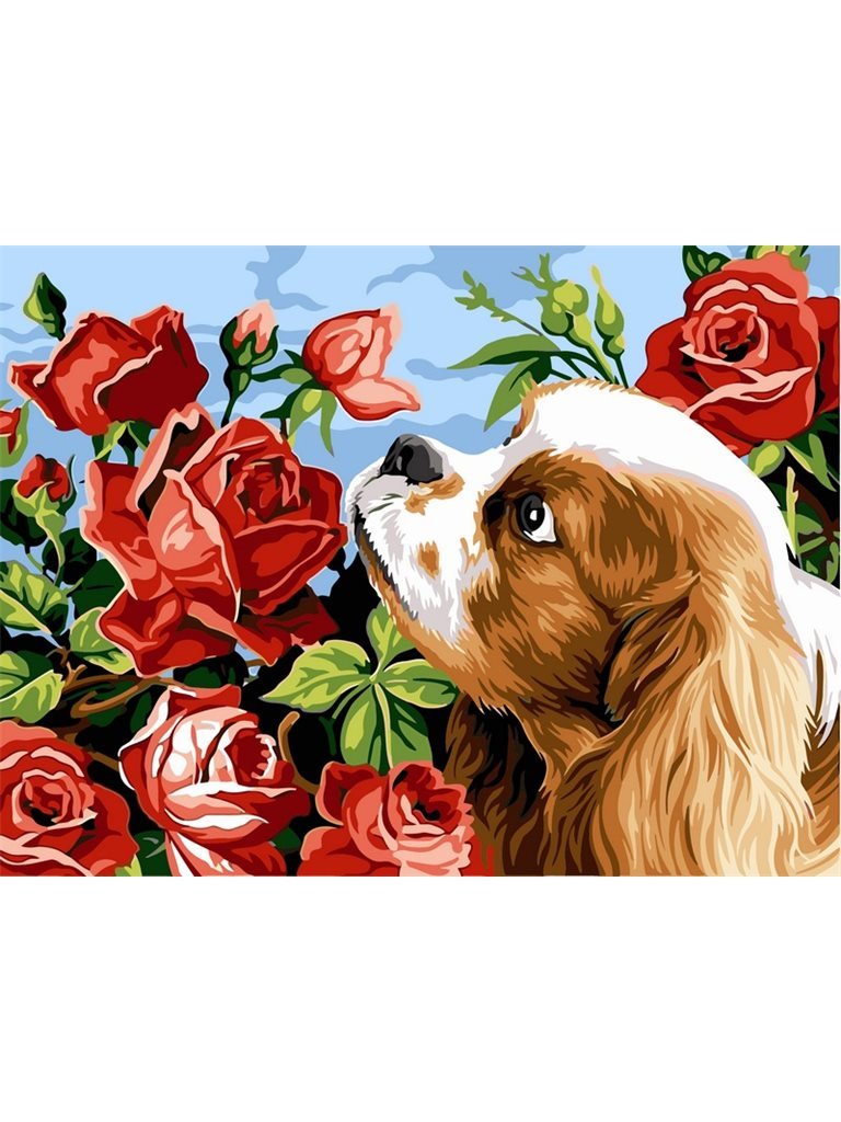 Картина по номерам "Кокер спаниэль и розы" 30*40 см VK106 Babylon