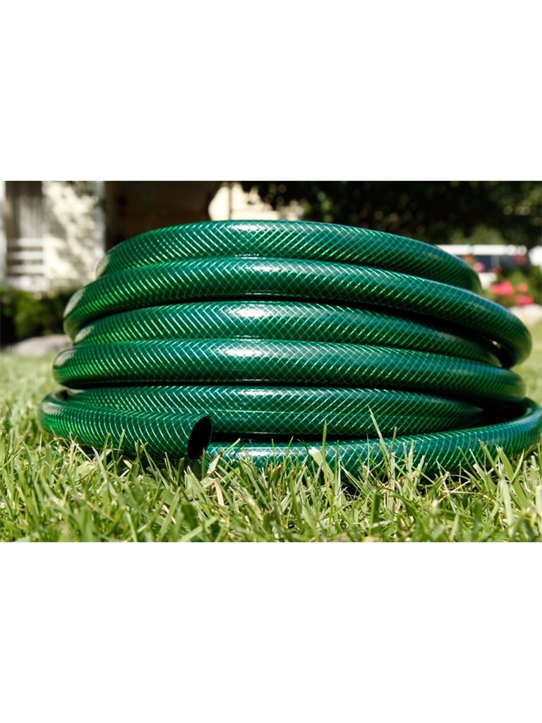 Трехслойные армированные шланги серии Euro Guip Green производства Италии отличаются прочностью, эластичностью, устойчивы к ультрафиолетовому излучению. Допускают использование в широком диапазоне температур окружающей среды от + 50 до - 5 °C без изменения своих эксплуатационных характеристик. Не содержат в своем составе вредных примесей. Прочное внутреннее армирование нитью из полиэстера позволяет шлангу не скручиваться и не перегибаться. Сохраняет гибкость и эластичность даже при высоких давлениях. Благодаря применению исключительно качественных материалов, современному технологичному производству и постоянному контролю качества данный шланг позволяет использовать его до 8 лет без потери первоначальных свойств.