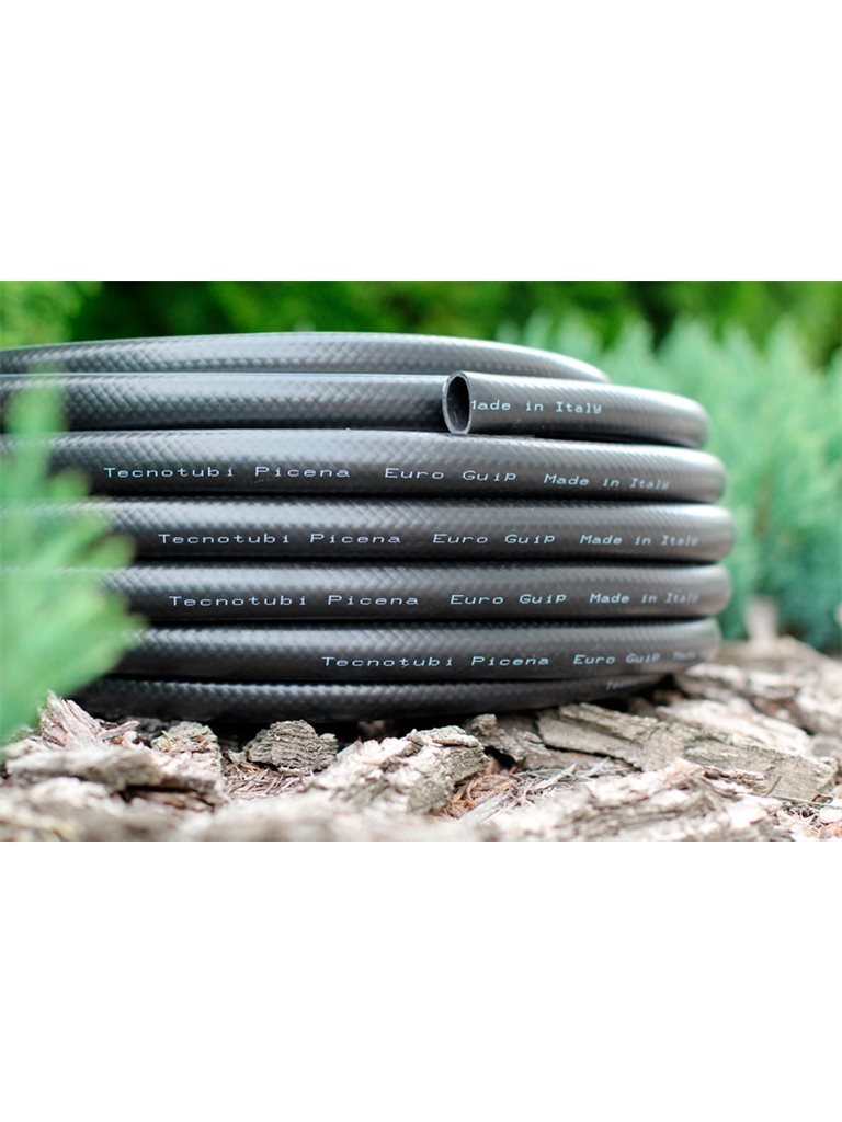 Армированные трехслойные шланги серии Euro Guip Black изготовленные на итальянском заводе Tecnotubi отличаются прочностью, эластичностью и устойчивостью к ультрафиолетовому излучению. Допускают использование в широком диапазоне температур от + 50 до - 5 °C без изменения своих первоначальных технических характеристик. Не содержат в своем составе вредных примесей. Благодаря надежному внутреннему армированию из полиэстеровой нити эти шланги не заламываются и не перегибаются во время полива. Сохраняют свою эластичность и гибкость даже при высоком давлении. Применение в производстве только качественных материалов, современный технологический процесс изготовления и постоянный контроль качества делают возможным использование шлангов этой серии до 8 лет без изменения их физических свойств.