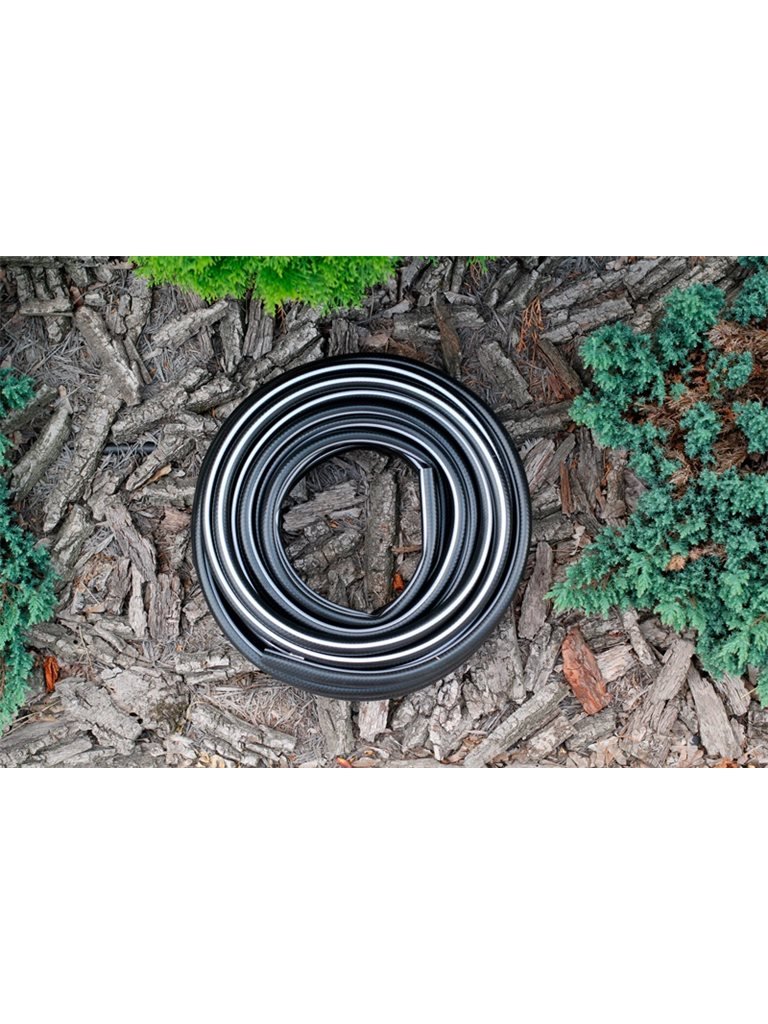 Шланг садовый Tecnotubi Euro Guip Black (EGB 1 50) диаметром 25 мм (1") длиной 50 метров изготовлен из поливинилхлорида высокого качества, устойчив к воздействию воды и водорастворимых удобрений. Плотный наружный слой защищает его от разрушения ультрафиолетовым излучением, истирания и различных механических повреждений. Средний слой шланга - это армирующая оплетка из крепкого синтетического волокна, которая делает его устойчивым к действию высокого давления до 8 атмосфер и стойким на разрыв. Внутренний слой гладкий, практически не создает сопротивления потоку воды, препятствует размножению водорослей и бактерий, не содержит в своем составе вредных примесей.