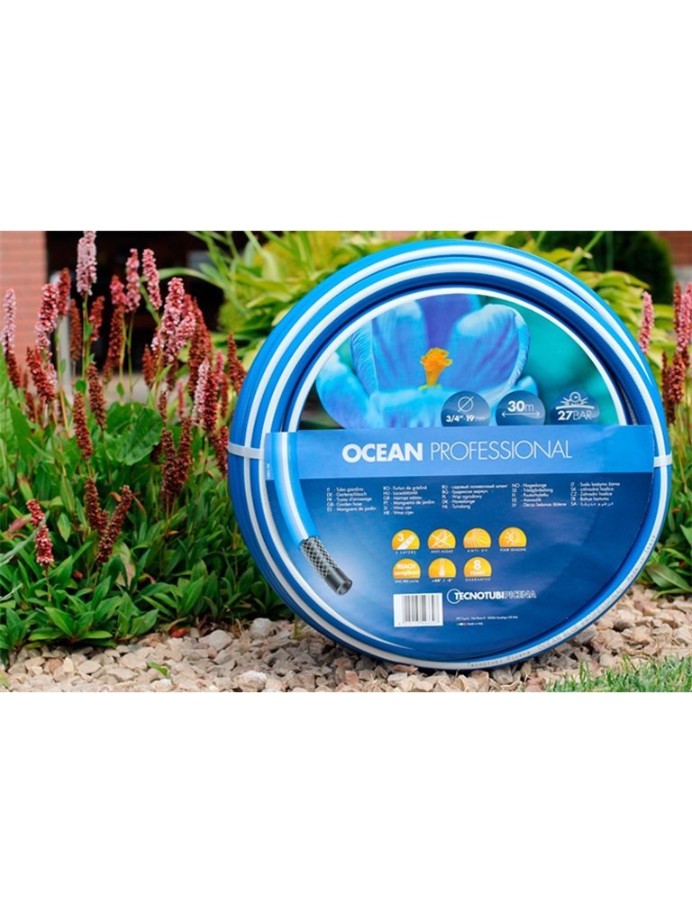 Армированные трехслойные шланги с увеличенной толщиной стенки серии Ocean изготовлены на заводе Tecnotubi в Италии. Они отличаются высокой прочностью и эластичностью, устойчивостью к ультрафиолетовому излучению, рассчитаны для работы на высоком давлении. Допускают использование в широком диапазоне рабочих температур от + 50 до - 5 °C без ухудшения своих первоначальных технических показателей. Не содержат в своем составе вредных примесей. Плотное внутреннее армирование, изготовленное из полиэстеровой нити, делает эти шланги не подверженными к заламыванию и перегибам во время использования. Прекрасно сохраняют свою гибкость и эластичность при высоком давлении воды. Применяемые для изготовления материалы проходят строгий контроль качества, что в сумме с использованием современного технологического процесса позволяет пользоваться шлангами этой серии до 10 лет без потери и снижения их первоначальных характеристик.
