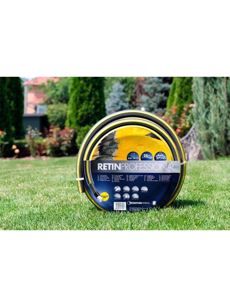 Четырехслойные шланги для полива с армированием серии Retin Professional производства итальянского завода Tecnotubi отличаются высокой эластичностью и устойчивостью к механическим нагрузкам, могут эксплуатироваться в широком диапазоне температур от + 60 до - 10°C. Внутренний слой изготовлен из пищевого поливинилхлорида без использования фталатных пластификаторов, идеально подходит для транспортировки питьевой воды и соответствует самым высоким европейским требованиям экологичности. Высокопрочная система трикотажно - полиэстерного армирования делает шланги этой серии устойчивыми к перегибам, скручиванию и разрывам, они гарантировано выдерживают рабочее давление до 15 атмосфер. Использование в производстве самых качественных материалов, высокотехнологичного процесса изготовления и автоматического контроля качества делает возможным эксплуатировать шланги Tecnotubi Retin Professional до 15 лет без изменения их первоначальных физических характеристик.