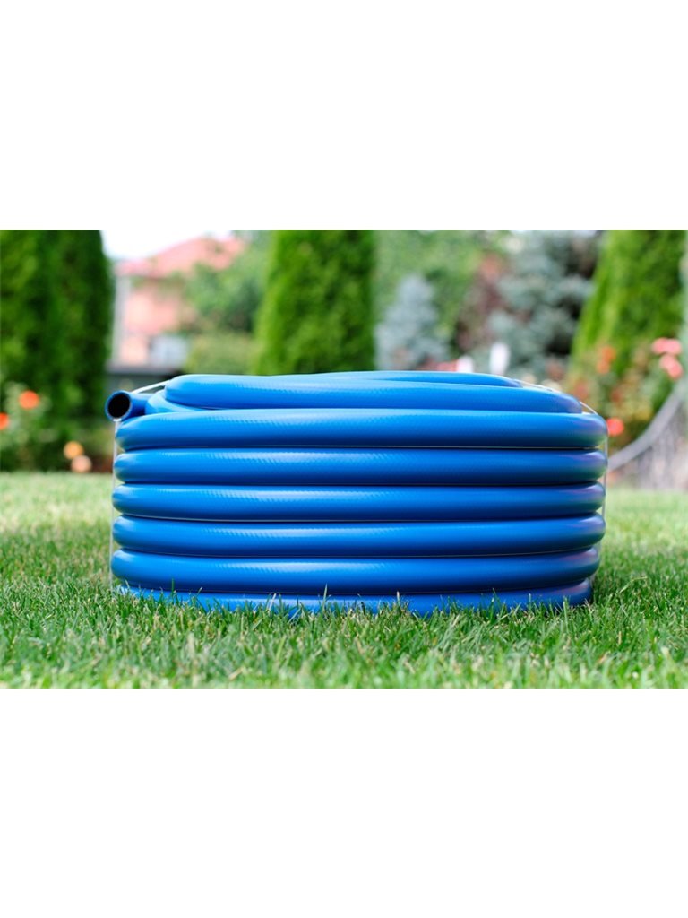 Шланг садовый Tecnotubi Ocean (OC 1 25) диаметром 25 мм (1") длиной 25 метров изготовлен из высококачественного ПВХ, стойкий к воздействию воды и различных видов удобрений. Плотный наружный слой защищает его от воздействия прямых солнечных лучей, истирания и других механических повреждений. Армирующая оплетка среднего слоя шланга изготовлена из прочного синтетического волокна и делает его стойким к линейным нагрузкам на разрыв и позволяет эксплуатацию при рабочем давлении до 12 атмосфер. Гладкий внутренний слой практически не создает сопротивления потоку воды, препятствует размножению водорослей и бактерий, содержание вредных примесей в составе менее 0,1%.