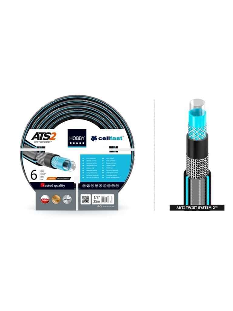 Шестислойные армированные садовые шланги серии Hobby изготовленные на заводе Cellfast в Польше обладают превосходными эксплуатационными качествами. Они прочные, эластичные, стойкие к физическому износу, применяются в широком диапазоне температур окружающей среды от + 60 до - 20°C. Внутренний слой выполнен без добавления вредных для растений и здоровья человека примесей, что позволяет использование этих шлангов для подачи питьевой воды и пищевых жидкостей. Запатентованная фирменная система двойной крестово-трикотановой оплетки из прочного полиэстерного волокна «Anti Twist System 2» защищает эти шланги от скручивания и блокирования подачи воды. Они обладают высокой прочностью и способны длительно работать при давлении до 16 атмосфер. Использование материалов высокого качества соответствующих всем современным европейским нормам, высокотехнологичного процесса изготовления и постоянного контроля качества делает возможным использование шлангов Cellfast Hobby до 12 лет без ухудшения их начальных механических свойств.