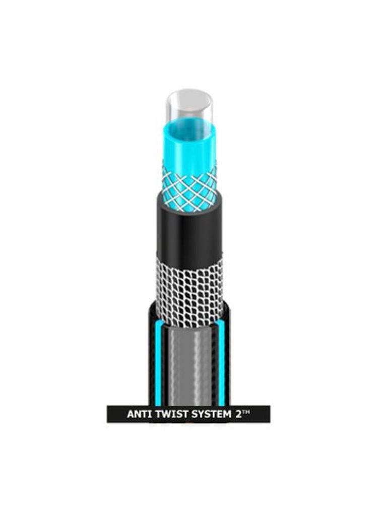 Запатентованная фирменная система двойной крестово-трикотановой оплетки из прочного полиэстерного волокна «Anti Twist System 2» защищает эти шланги от скручивания и блокирования подачи воды. Они обладают высокой прочностью и способны длительно работать при давлении до 16 атмосфер. Использование материалов высокого качества соответствующих всем современным европейским нормам, высокотехнологичного процесса изготовления и постоянного контроля качества делает возможным использование шлангов Cellfast Hobby до 12 лет без ухудшения их начальных механических свойств.
