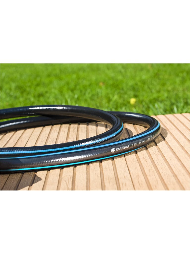 Шестислойные армированные садовые шланги серии Hobby изготовленные на заводе Cellfast в Польше обладают превосходными эксплуатационными качествами. Они прочные, эластичные, стойкие к физическому износу, применяются в широком диапазоне температур окружающей среды от + 60 до - 20°C. Внутренний слой выполнен без добавления вредных для растений и здоровья человека примесей, что позволяет использование этих шлангов для подачи питьевой воды и пищевых жидкостей.