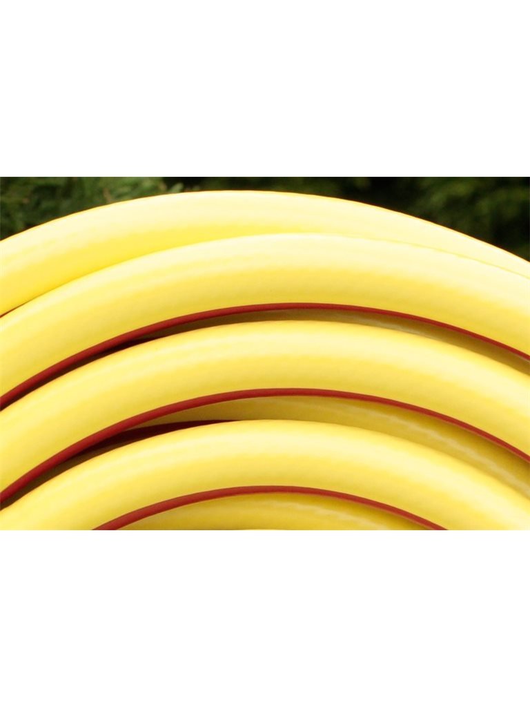 Трехслойные армированные садовые шланги для полива серии Радуга желтая производства завода Evci Plastik Турция отлично зарекомендовали себя у украинских садоводов и фермеров своей невысокой ценой, надежностью и практичностью использования. Крестообразное армирование делает данные шланги прочными, не подверженными перегибам во время полива, позволяет сохранять форму и эластичность даже при высоких давлениях и постоянных механических нагрузках. Дополнительным их преимуществом является возможность использования при температурах от + 60 до - 5 °C без изменения физических параметров влияющих на эксплуатационные характеристики. Так же они не содержат в своем составе вредных примесей свинца и бария, делая их использование безопасным для человека и окружающей среды. Применение для изготовления качественных первичных материалов делает возможным использование шланги этой серии сроком до 5 лет.