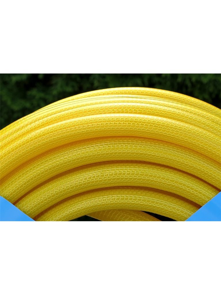 Шланг для полива Evci Plastik Bella Classik (BLL 3/4 50) диаметром 19 мм (3/4") длиной 50 метров изготовлен из качественного ПВХ, стойкого к воздействию воды и различных видов водорастворимых удобрений. Наружный прозрачный слой защищает шланг от физических повреждений, стирания и ультрафиолетового излучения. Средний слой усилен армирующей оплеткой с сетчатым плетением из прочного синтетического волокна, он защищает шланг от разрывов и делает его устойчивым к давлению до 6 атмосфер. Внутренний слой гладкий, не создает сопротивления току воды, не содержит вредных примесей свинца, бария и кадмия.